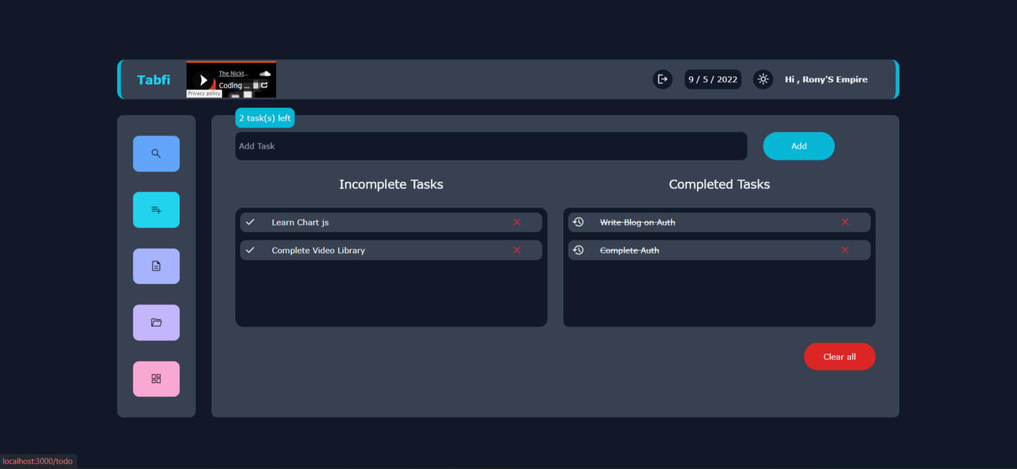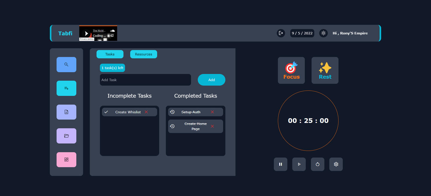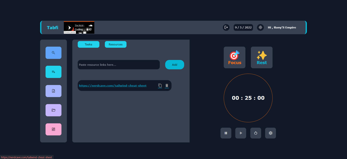 Tabfi boasts of several intuitive features like notes, todos, Pomodoro, bookmarks, Project Management, and even Lofi!!.Why we decided to make this our Hackathon Submissions?